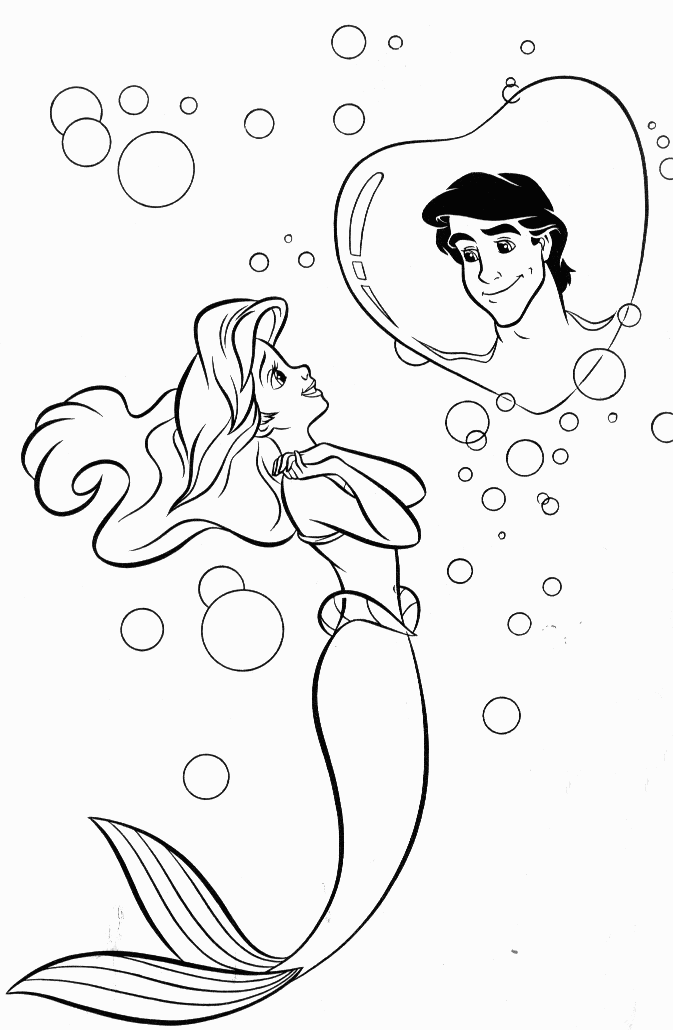 | Ariel in njena ljubezen | Pobarvanka Ariel nosi venec | Pobarvanka Ptiček zabava ribico in Ariel |