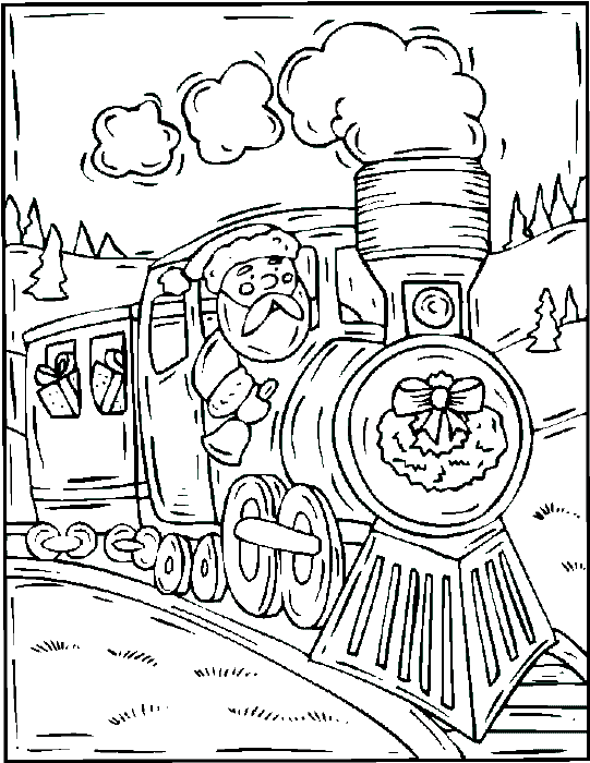 | Pobarvanka lokomotive z božičkom | Vesela lokomotiva | Pobarvanka stare lokomotive |